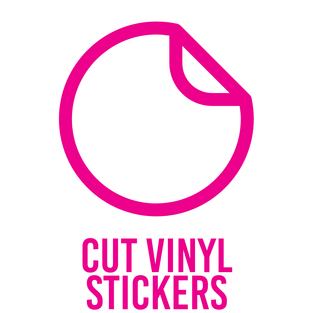 Your design printed onto premium gloss vinyl with a choice of matt or gloss lamination finish. Cut choice of custom, round, square, square cornered or a kiss cut.