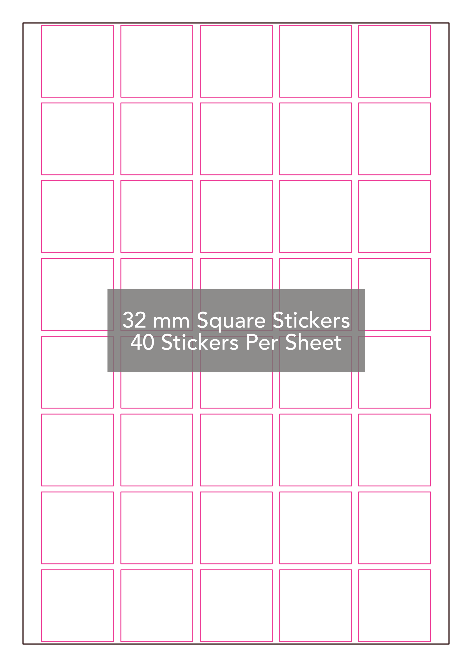 - 32mm - 40 Stickers in total are printed and cut on an A4 sheet.