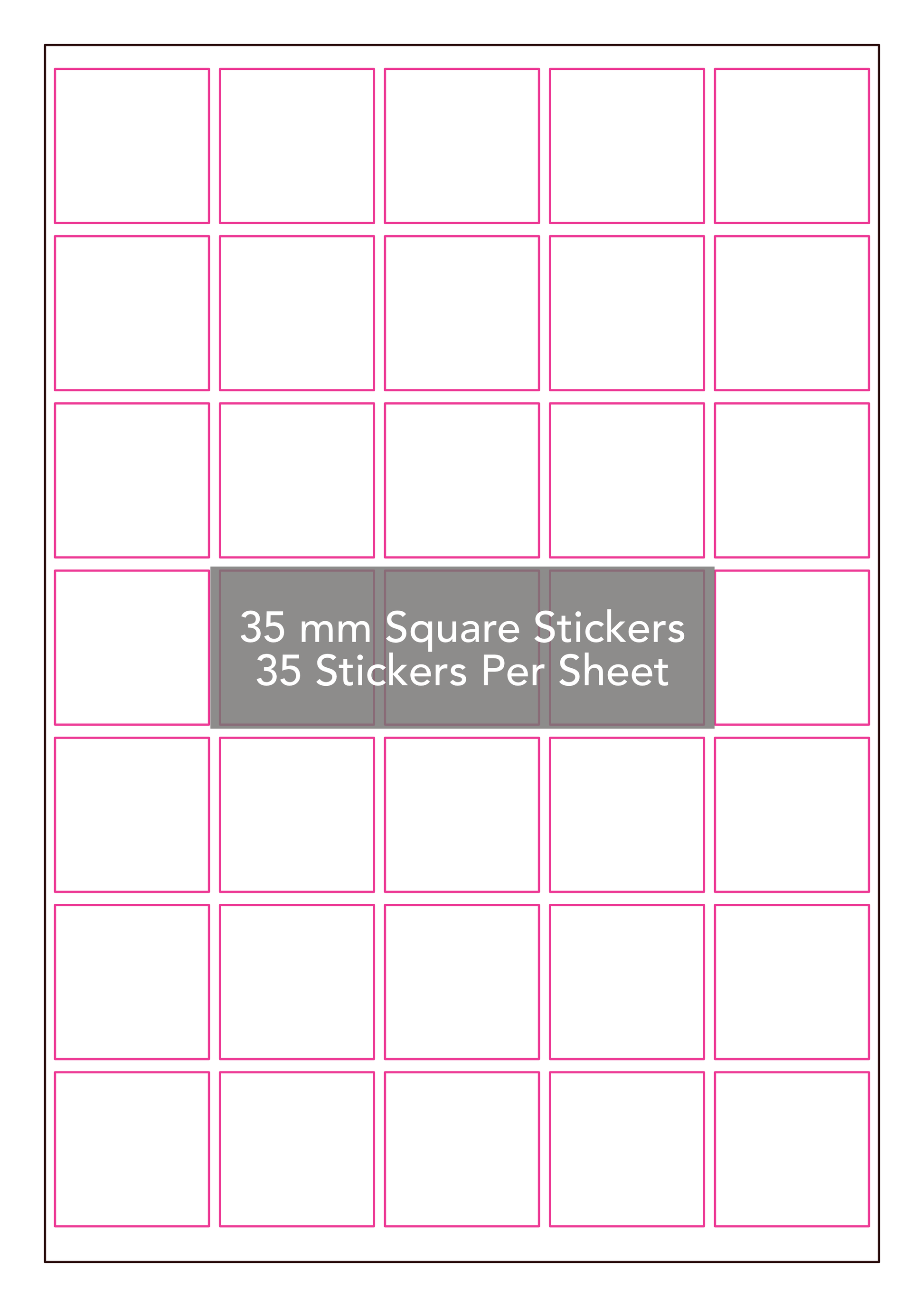 - 35mm - 35 Stickers in total are printed and cut on an A4 sheet.