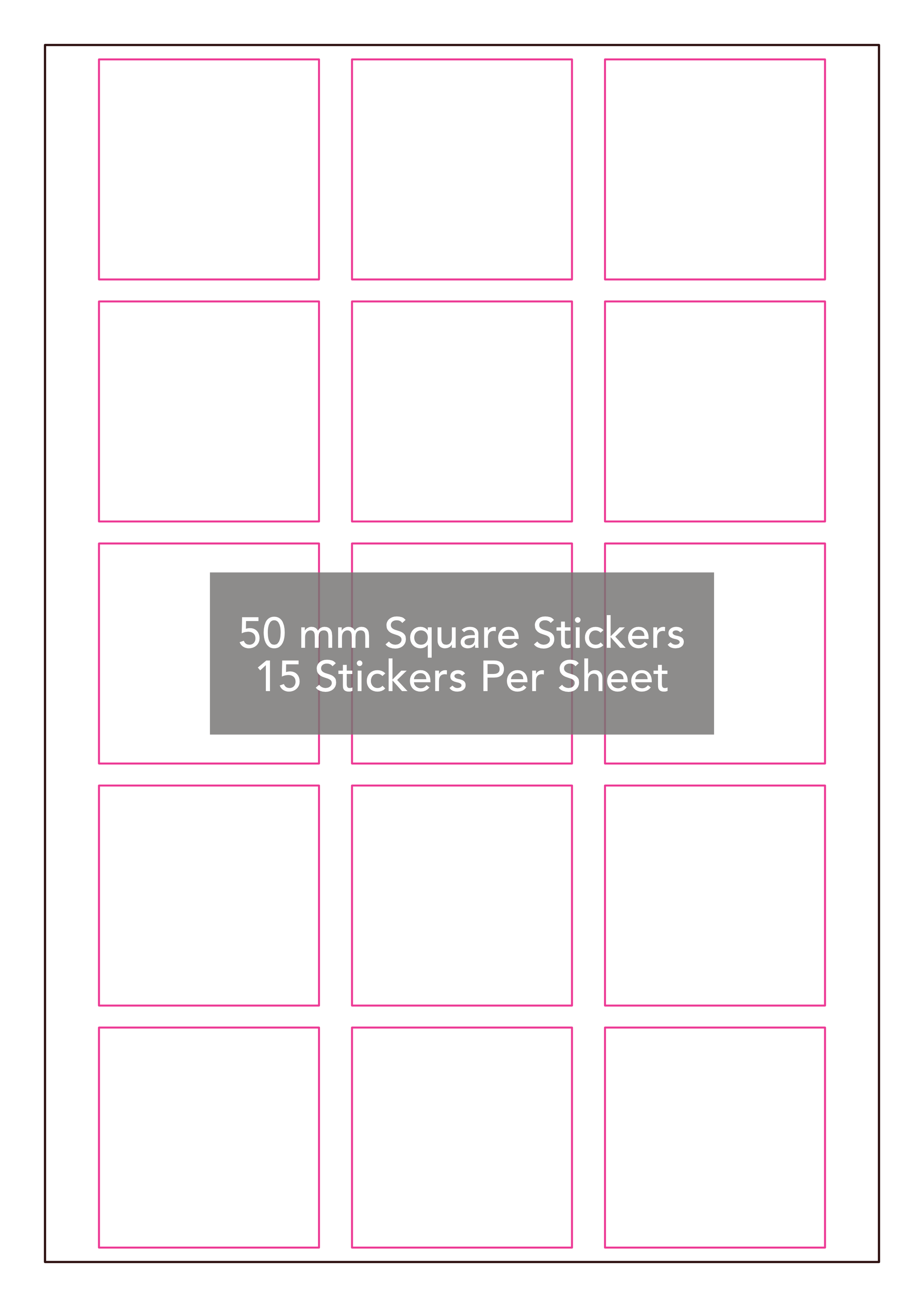 50mm - 15 Stickers in total are printed and cut on an A4 sheet.